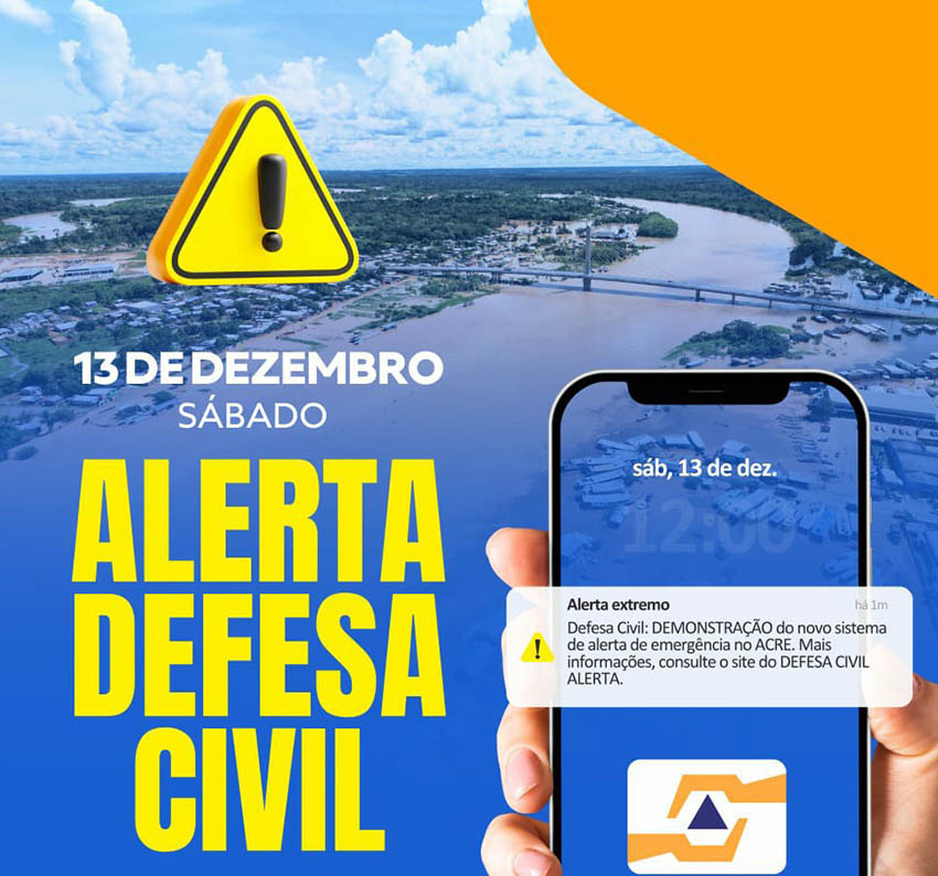 Defesa Civil de Cruzeiro do Sul fará teste do Sistema de Alerta de Emergência neste sábado 11 de dezembro de 2025