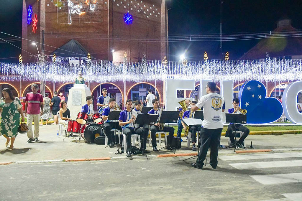 “A banda municipal está trazendo os famosos temas natalinos tocados ao vivo. Geralmente, a gente escuta essas músicas em CD ou de forma digital. Agora, a prefeitura está proporcionando essa experiência presencial, algo que víamos apenas nos grandes centros. Estamos aqui desde sexta-feira, antes e depois do horário da missa, acolhendo as famílias com músicas natalinas e clássicas”, explicou.