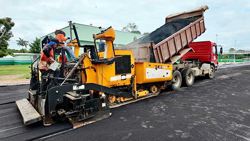 As equipes retomaram a todo vapor os serviços de asfaltamento da Rua Mimosa de Sá. Ao todo, estão sendo pavimentados 1.300 metros da via, que receberá asfalto, calçadas acessíveis, meio-fio, sarjeta e sinalização horizontal e vertical.