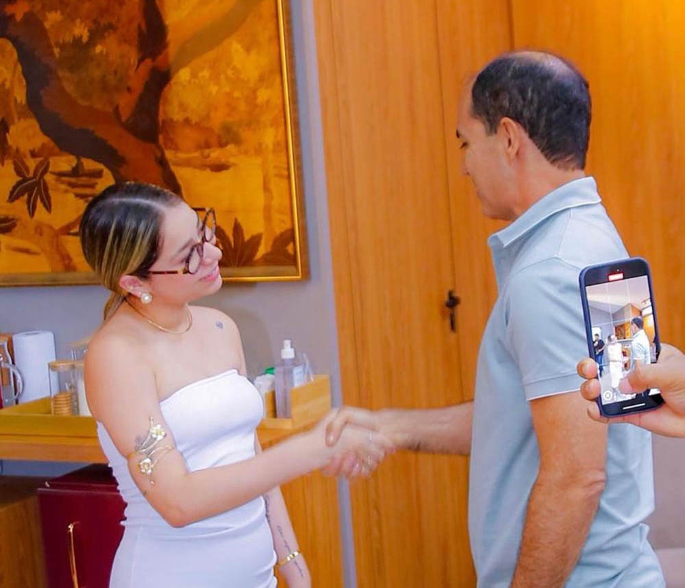 “ Olá gente, olha que visita ilustre que eu recebi hoje aqui no gabinete. Marília Tavares. Vai estar daqui há pouquinho, a partir das 11 horas, no Festival de Farinha de Cruzeiro do Sul. É isso, Marília. Seja bem-vinda à nossa cidade”, pontuou o prefeito Zequinha Lima.