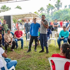 Aqui é uma região que tem muita produção na área da agricultura e essa pessoas levam os produtos para cidade. Oito barcos com motor estão sendo entregues para fortalecer agricultura familiar de todos os moradores daqui da região. Quero ressaltar aqui que nenhum rio Cruzeiro do Sul tinha barco de pra transportar os produtos das pessoas. Quem quisesse transportar um saco de farinha, de banana tinha que pagar porque fazia muito tempo que prefeitura nenhuma contratava. A primeira coisa que fizemos foi contratar dois barcos para o Mirim, dois barcos Val Paraíso, dois barcos para o Juruá e contratamos dois barcos para o Rio Liberdade pra garantir que todo mundo levasse seus produtos ou pra a ponte do liberdade ou para a cidade sem pagar um centavo. Já entregamos equipamentos nos Rios Juruá Mirim, Valparaiso e Juruá e agora aqui no Liberdade. São itens que melhoram a produção dos nossos agricultores e por consequência a renda deles”, disse Zequinha.