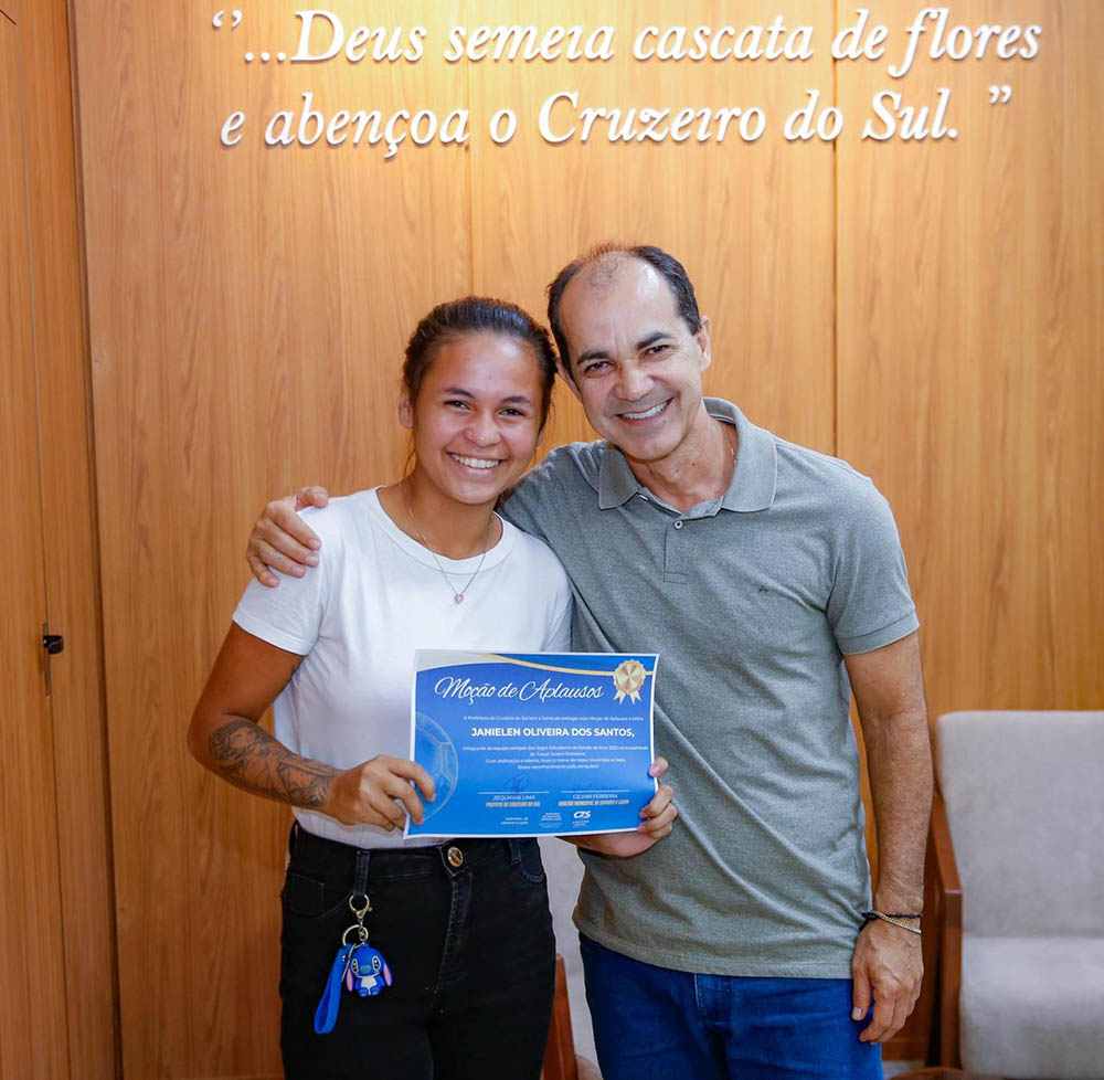 “Fizemos questão de realizar a fase rural dos Jogos Escolares, e essa turma foi campeã lá. Depois, enfrentaram as escolas da zona urbana e venceram mais uma vez. Representaram Cruzeiro do Sul no estadual, saíram campeãs e agora seguem para Brasília. Esse é um mérito de vocês. Fiz questão de homenagear essas jovens com uma moção de aplausos”, afirmou o prefeito.