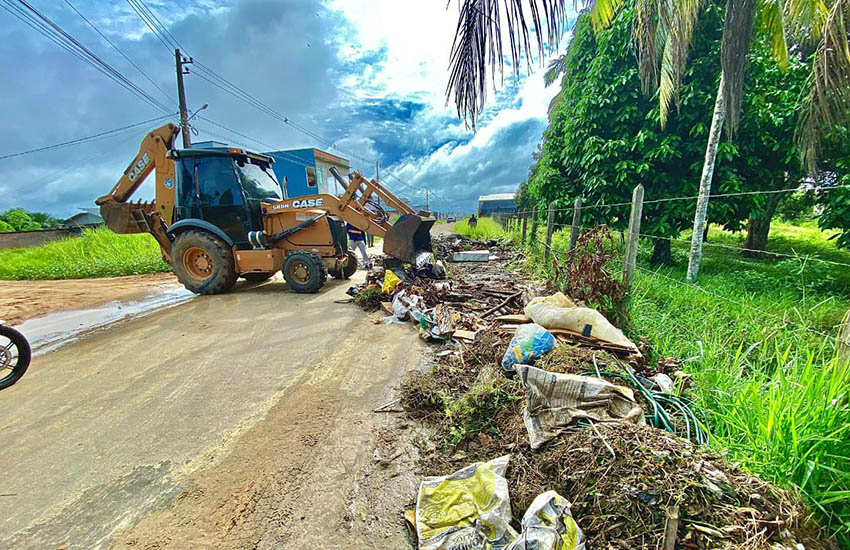 No mutirão de limpeza, as equipes atuam com uma força-tarefa com serviços de roçagem, retirada de entulho e manutenção das vias.