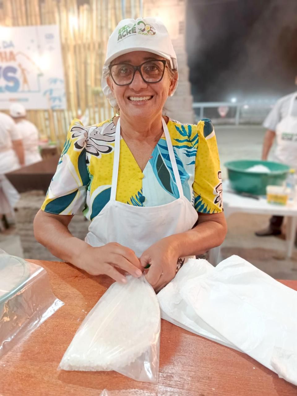 Maria Celeste é uma das expositoras do estande. Com mais de 35 anos de experiência na venda de derivados da farinha, destacou a importância da feira para a sua renda. “Com a tapioca e outros produtos, consegui vender um total significativo nas primeiras noites. Essa renda é essencial, pois na agricultura, o retorno financeiro pode demorar mais”, contou.