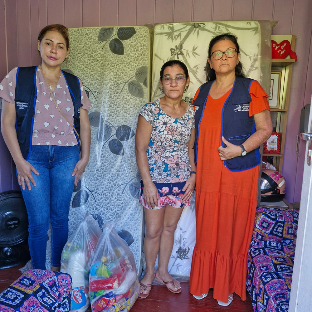 Foram entregues à ela cestas básicas, dois colchões, além da garantia de toda a assistência necessária, inclusive acompanhamento psicológico, uma vez que a vítima está bastante abalada emocionalmente. Outros serviços também foram oferecidos à família de dona Ivoneis, como retirada de documentos e aquisição de materiais e alimentos.