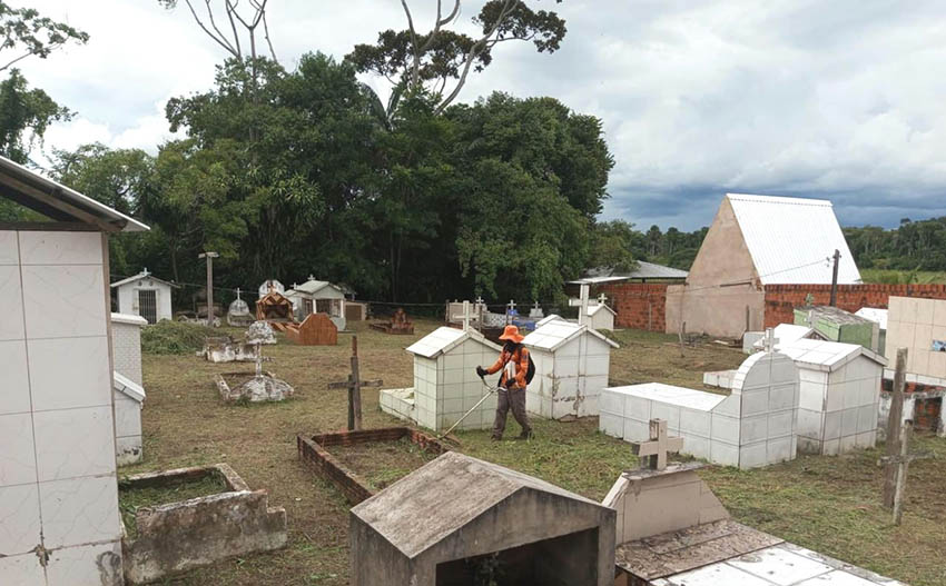 “Nosso prefeito Zequinha pediu atenção total aos cemitérios, para deixar tudo preparado para o Dia dos Finados. Estamos na cidade e entrando nas vilas para realizar a limpeza de todos os cemitérios, tanto da zona rural quanto urbana”, destacou o Coordenador de Limpeza Pública da Prefeitura de Cruzeiro do Sul,Fábio Novo.
