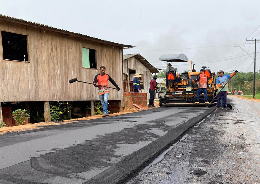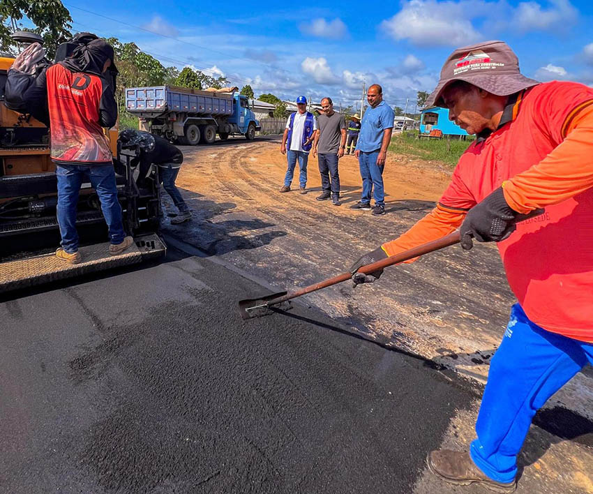Entre as obras em destaque, está o asfaltamento do ramal da Gazin, localizado no bairro Miritizal, onde são aplicados cerca de 500 toneladas de asfalto ao longo de 1,7 quilômetro.