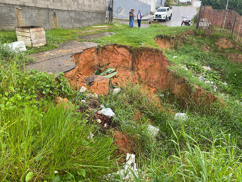 “É um serviço grande porque envolve muitas carradas de barro para conter o avanço da erosão. Estamos realizando toda a drenagem necessária, colocando bueiros e fazendo o aterro para que esse buraco não avance mais e não ameace as casas que estão próximas. Depois dessa etapa, faremos a recuperação da estrada com asfalto e meio-fio, devolvendo segurança e trafegabilidade para os moradores”, destacou.