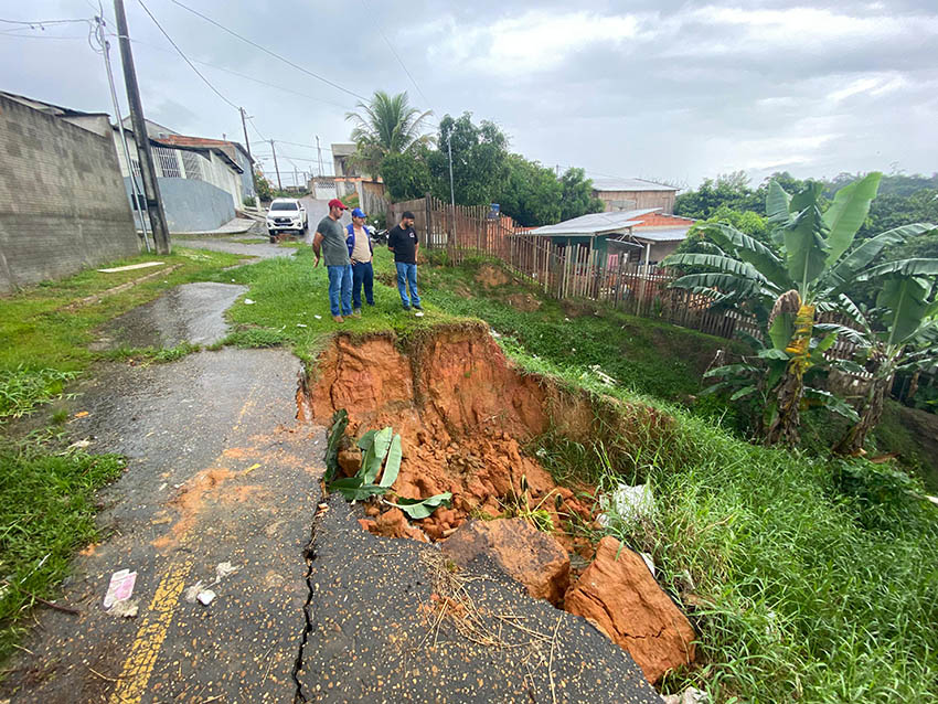 Segundo o secretário municipal de obras, Carlos Alves, o problema se agravou recentemente, provocando o desabamento de parte da estrada e ameaçando a estrutura de imóveis próximos.