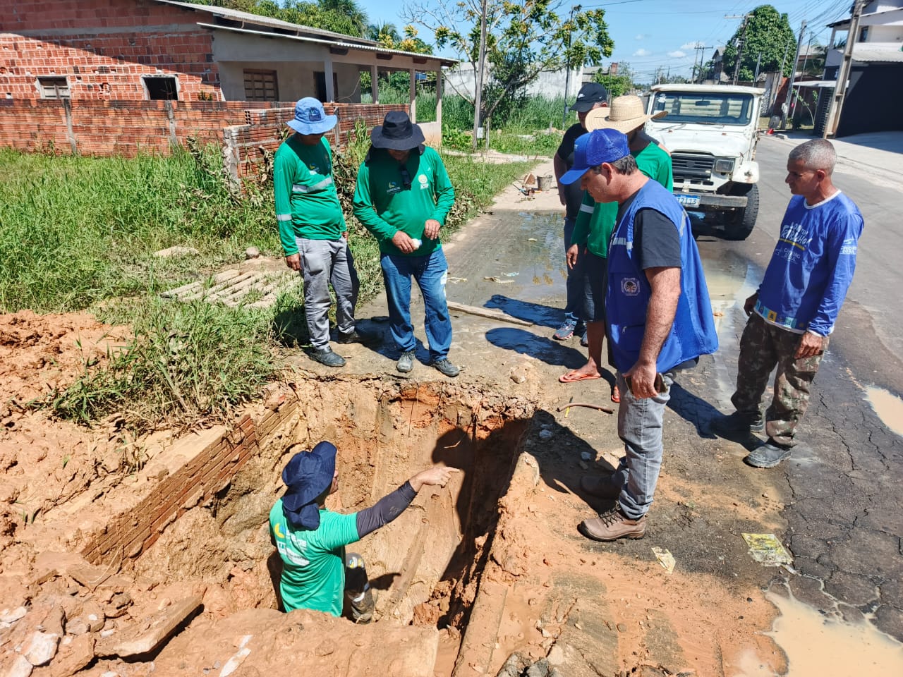 A Prefeitura de Cruzeiro do Sul, por meio da Secretaria Municipal de Obras, Desenvolvimento Urbano e Habitação, segue com os serviços de melhorias em diversos pontos da cidade. Nesta terça-feira, 8, equipes atuam no Bairro Miritizal, em frente à sede da Prefeitura, onde um cano estourado causou danos ao asfalto, exigindo reparos imediatos.