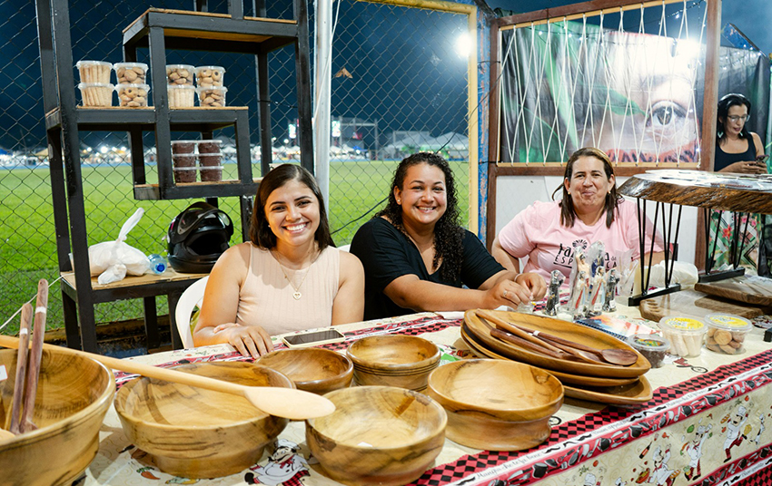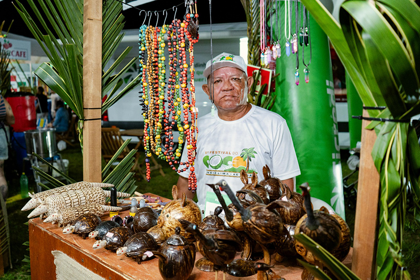 As tendas do artesanato chamaram a atenção pela delicadeza e riqueza de detalhes. Peças feitas em madeira, representando a fauna e a flora, encantaram pelo realismo e acabamento refinado. Os produtos derivados do coco, o crochê e a machetaria completaram um cenário que valorizou a identidade cultural e os saberes tradicionais.