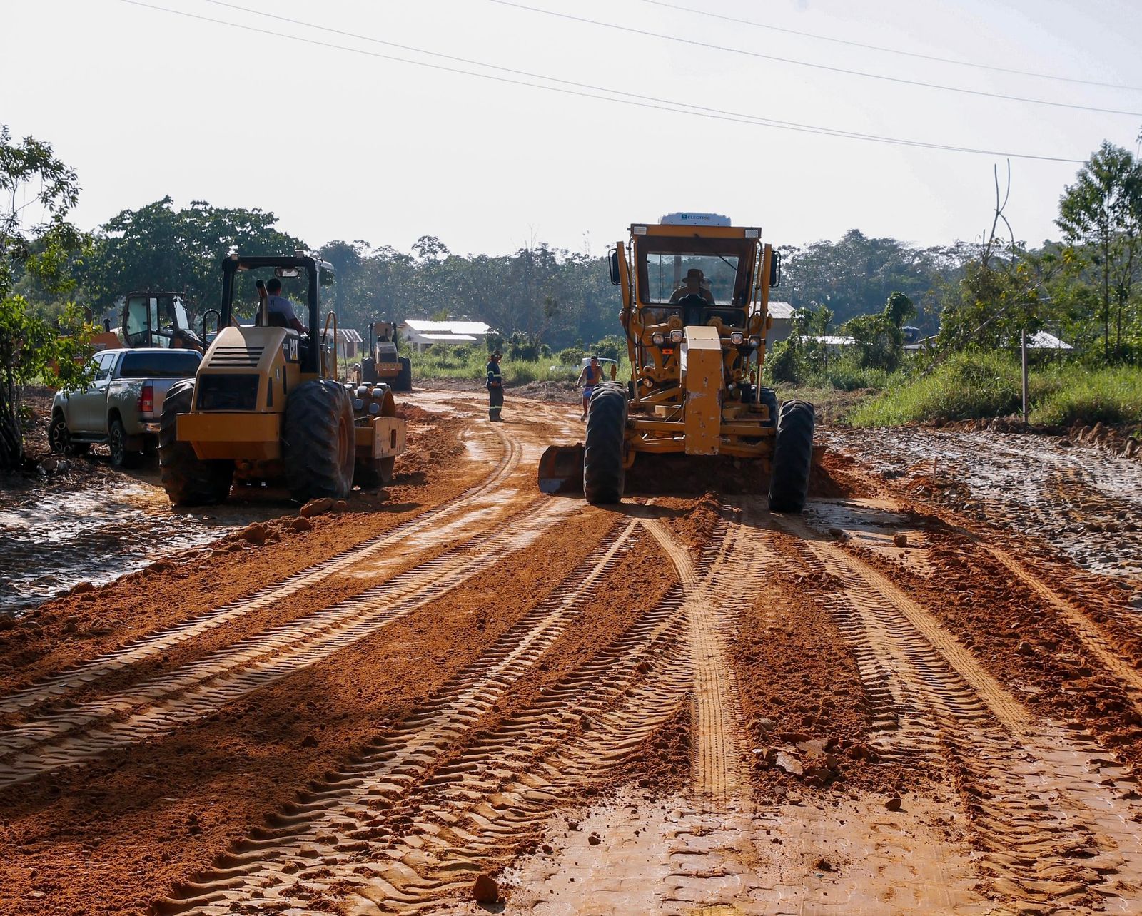 A Prefeitura de Cruzeiro do Sul, por meio da Secretaria de Obras, Desenvolvimento Urbano e Habitação, está em plena execução de obras de asfaltamento. Nesta quarta-feira, 13, o prefeito Zequinha Lima realizou uma vistoria no serviço de terraplanagem que estão sendo executadas no Ramal da Gazin, no Miritizal e na Rua Aristides Cerqueira, no bairro São Cristovão. No Ramal da Gazin, serão feitos 1. 7 quilômetro de asfalto, enquanto na Rua Aristides Cerqueira, serão 532 metros.